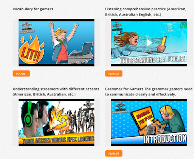 - Examples: This section has links to YouTube playlists with sections on grammar for gamers, vocabulary for gamers, general help for learning English through games.